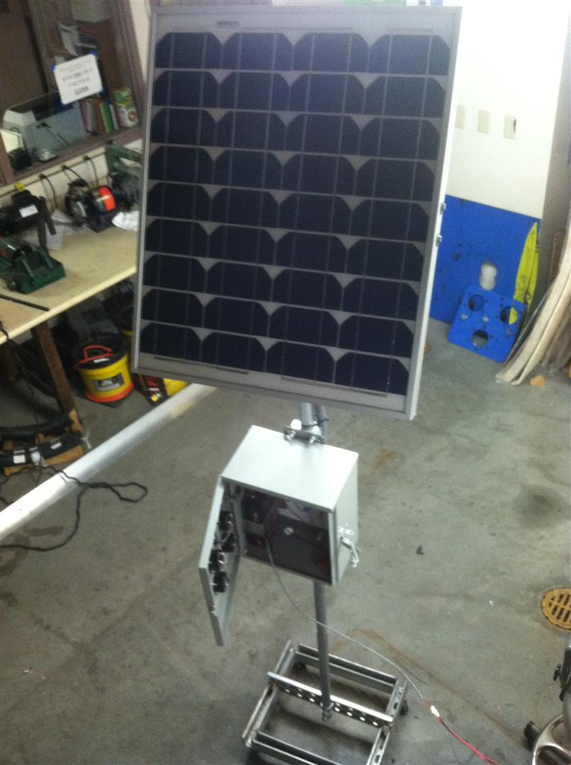 Designed and built a solar-powered battery charging station using a 40W photovoltaic panel feeding into a Buck (step-down) converter to safely charge a 6V 12Ah lead acid battery. Included circuit design, simulation, and physical construction with enclosure and monitoring gauges. CSULB EE458, Fall 2011.
